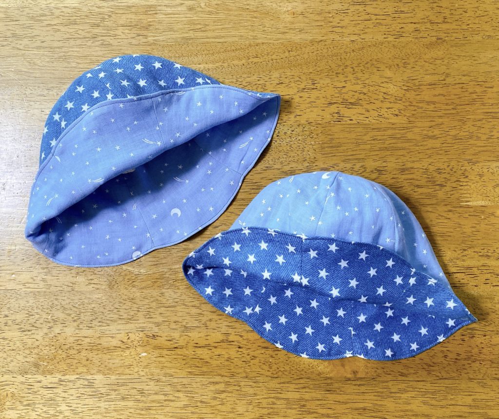 チューリップハットなら、折り曲げることで、サイズの調整もできそうだし、リバーシブルにもできるかも!