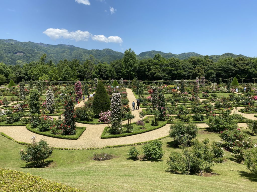 どこもかしこも隅々まで手入れされ、色彩・眺望・空間の全てを計算しつくされたシンメトリーの美しいローズガーデン!