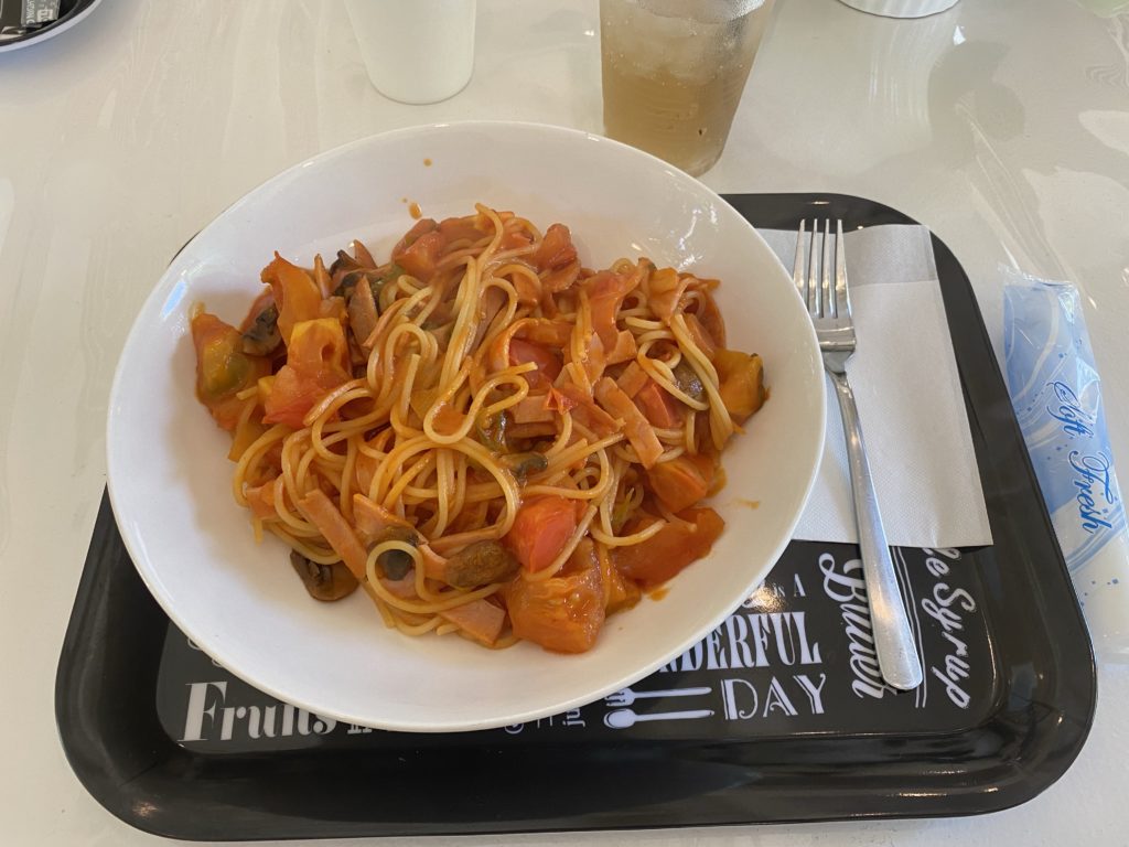 夫は、アスパラとベーコンのペペロンチーノを、私は生トマトのナポリタンをいただきました。